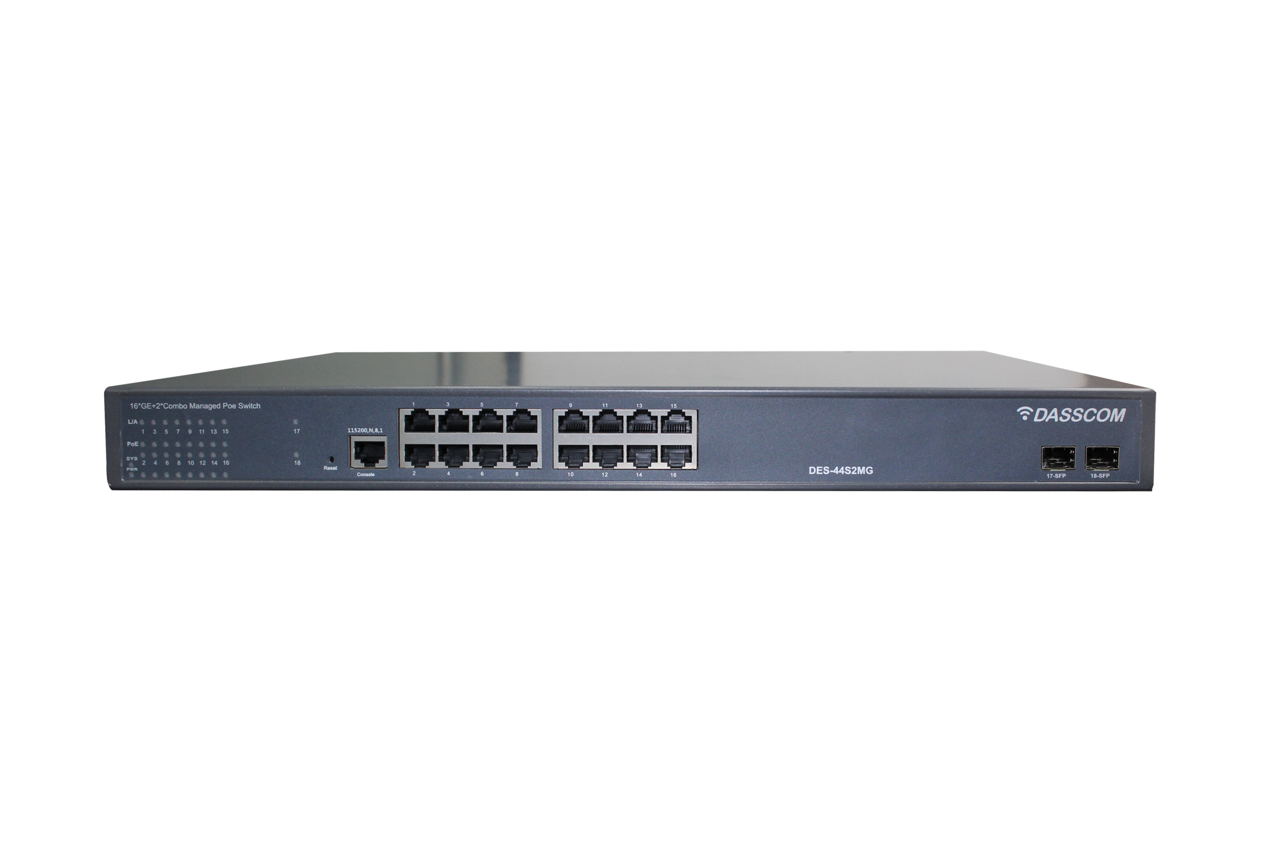 The DES-44S2MG is a full Gigabit managed switch. it has 16*10/100/1000M RJ45 ports+2*1000M SFP ports Managed PoE Switch PoE port support AF/ATintelligent recognition,Standard power is 15.4W/port Bandwidth:56Gbps,MAC table:8K