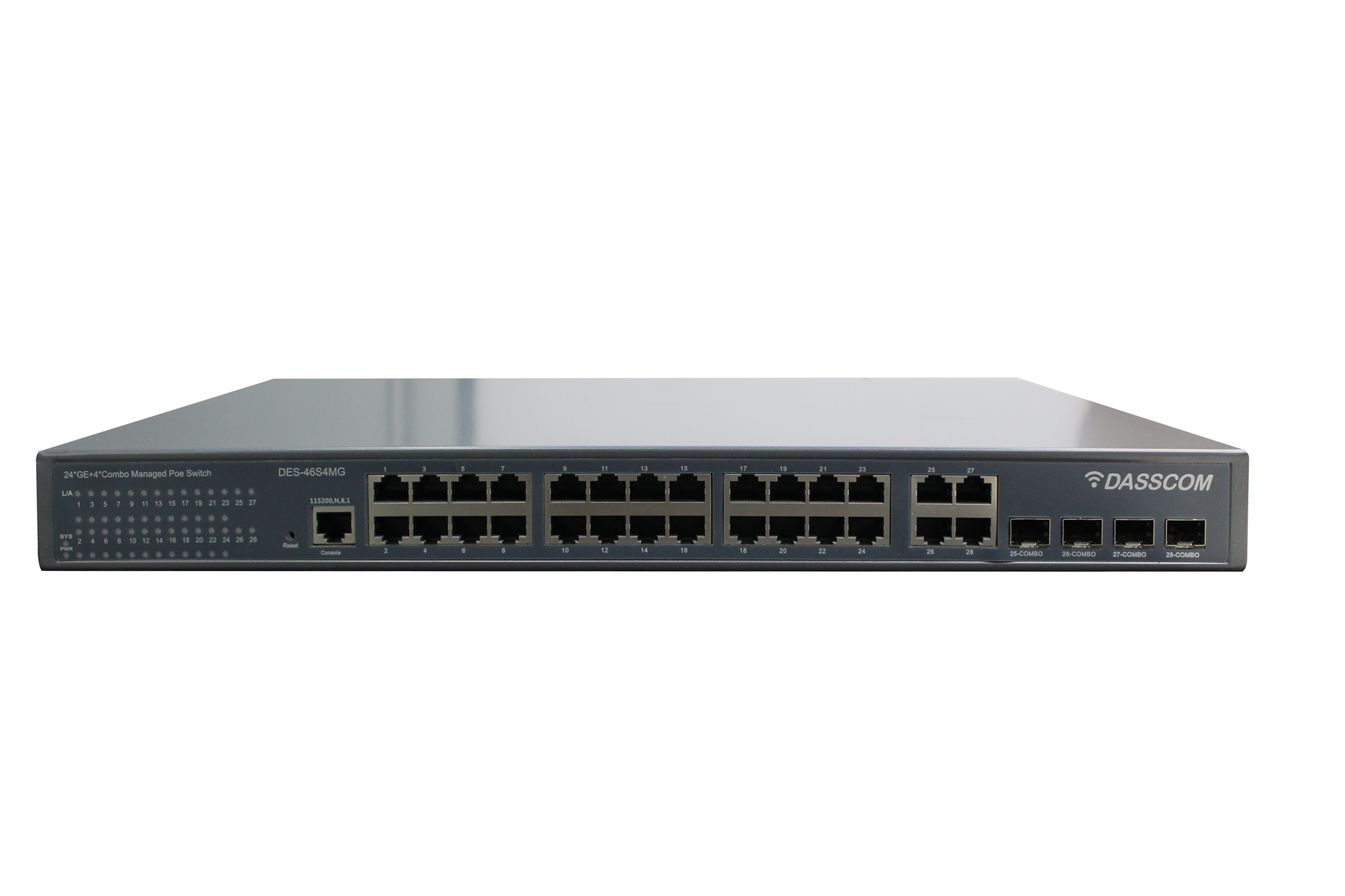 DES-46S4MG is a full Gigabit managed switch. it has16*10/100/1000M RJ45 ports+2*1000M SFP ports Managed PoE Switch PoE port support AF/ATintelligent recognition,Standard power is 15.4W/port Bandwidth:56Gbps,MAC table:8K